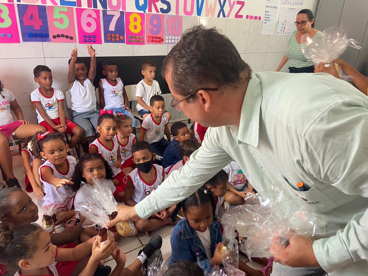 Em clima de muita alegria, alunos da Creche Nova Jerusalém, no bairro Malhado, em Ilhéus, que abriga cerca de 300 crianças de 4 e 5 anos de idade em três unidades, receberam ovos e bombons de chocolate, entregues por professores e estudantes. “Nós somos educadores, trabalhamos para a vida, essa parceria com o Ceep faz a diferença para cada criança que está recebendo o ovo de Páscoa, o que fica evidente na felicidade estampada no rosto de cada uma delas”, disse o diretor da creche, Gilton Oliveira Silva.