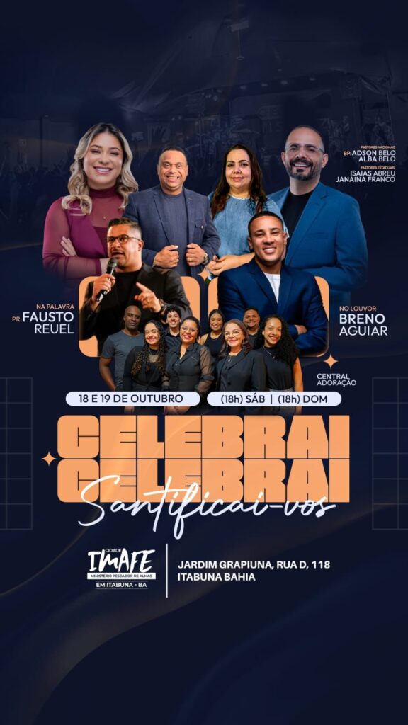 A Igreja Cidade IMAFE, em Itabuna, se prepara para realizar a Conferência Celebrai 2025, que acontecerá neste sábado (18) e domingo (19) de outubro, sempre a partir das 18h30. O evento promete ser um marco espiritual na cidade, reunindo fiéis e visitantes em duas noites de intensa adoração, palavra e comunhão.